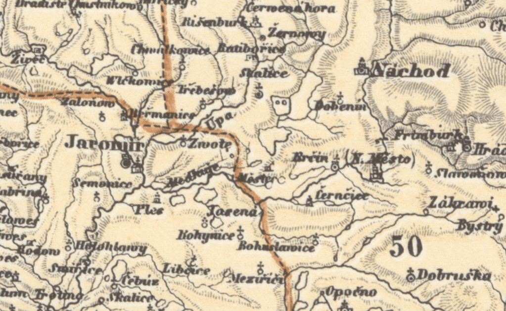 Rekonstrukční mapa zachycující Čechy v 14. století, František Palacký, Josef Kalousek, 1894.
