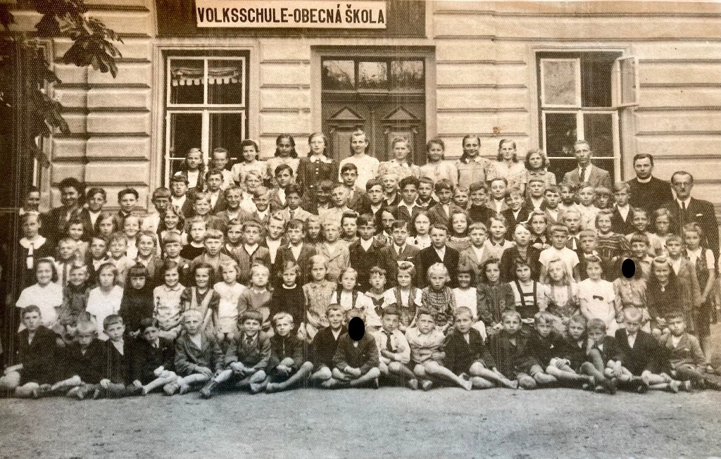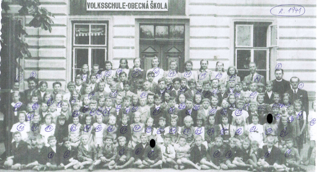 Máme radost, že se k nám dostala tato školní fotografie (po roce 1942, kdy se začal používat německý nápis Volksschule místo Schule) od naší věrné čtenářky Zdeňky (*1934). Přikládáme též očíslovanou fotografii se jmény žáků a učitelů, kterou pro nás vytvořila spolu se svojí pravnučkou. Rádi bychom tímto poděkovali za nalezený poklad a za pečlivé očíslování a ztotožnění některých žáků. Je to pro nás nesmírně cenné. Jedná se o jednu z cest, díky které lze uchovat vzpomínky, jež by jinak mohly být zapomenuty. Více o jasenské škole jsme psali v článku (odkaz zde).