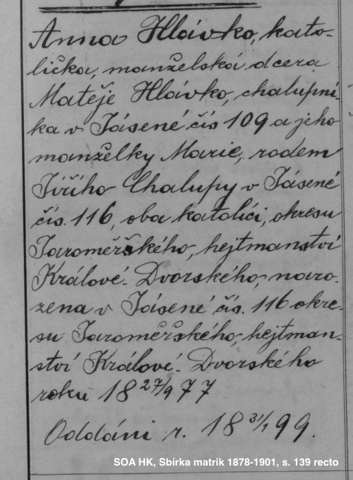Z matrik (SOA Hradec Králové, Sbírka matrik Východočeského kraje, matriky obce Jasenná a městečka České Meziřiří, dostupné online zde):