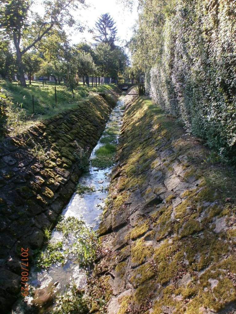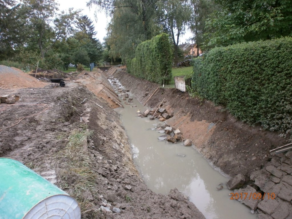Dřívější rybníčky, kterých bylo v obci nespočet, sloužily coby zásobiště vody pro přilehlé usedlosti v případě požáru. Nejvíce jich bylo zrušeno během regulace potoka, která začala 2. května 1947 a skončila 2. října 1952. Záloha na projekt regulace potoka byla zaplacena před 12. prosincem 1939. Vedení projektu, který započal dva roky po válce, měl na starosti mistr Václav Chalupa a plánovaný rozpočet projektu činil 7 milionů Kčs. Každý občan měl povinnost odpracovat 50 hodin ročně za 12 Kčs za hodinu práce, přičemž rolníci poskytovali koňské potahy. Hospodářská farní stavení sloužily tehdy k výrobě a ke skladování betonových rour. Někdy v té době byla zřejmě odstraněna brána a zeď přiléhající k faře.