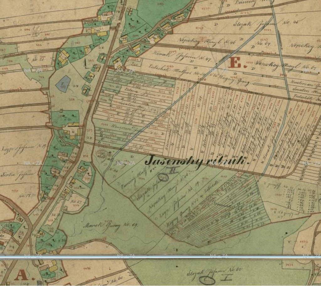 Potok je poprvé zaznamenán na I. vojenském mapování Čech z let 1764-1768 a 1780-1783. Na mapě protéká rybníky Kobosák, Velkým Jasenským rybníkem a Zámeckým rybníkem, který býval v místech pod kaplí sv. Huberta u Starého Plesu. Tzv. Velký Jasenský rybník byl vypuštěn pravděpodovně v 18. století. Na indikačních skicách z roku 1840 po něm zbyl pouze název a asi 75 proužků polí, tzv. familiantů. Na Horním konci vsi jsou náznaky dalších dvou menších rybníčků.