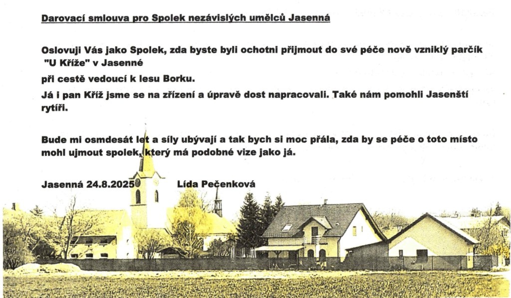 Náš spolek byl také obdarován. Darem byl závazek vzít do své péče nově vzniklý „parčík U Kříže“.