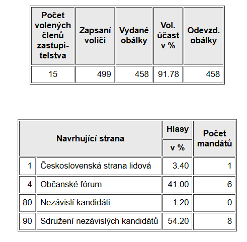 První svobodné demokratické volby do obecního zastupitelstva se na lokální úrovni konaly o něco později, 24. listopadu 1990.